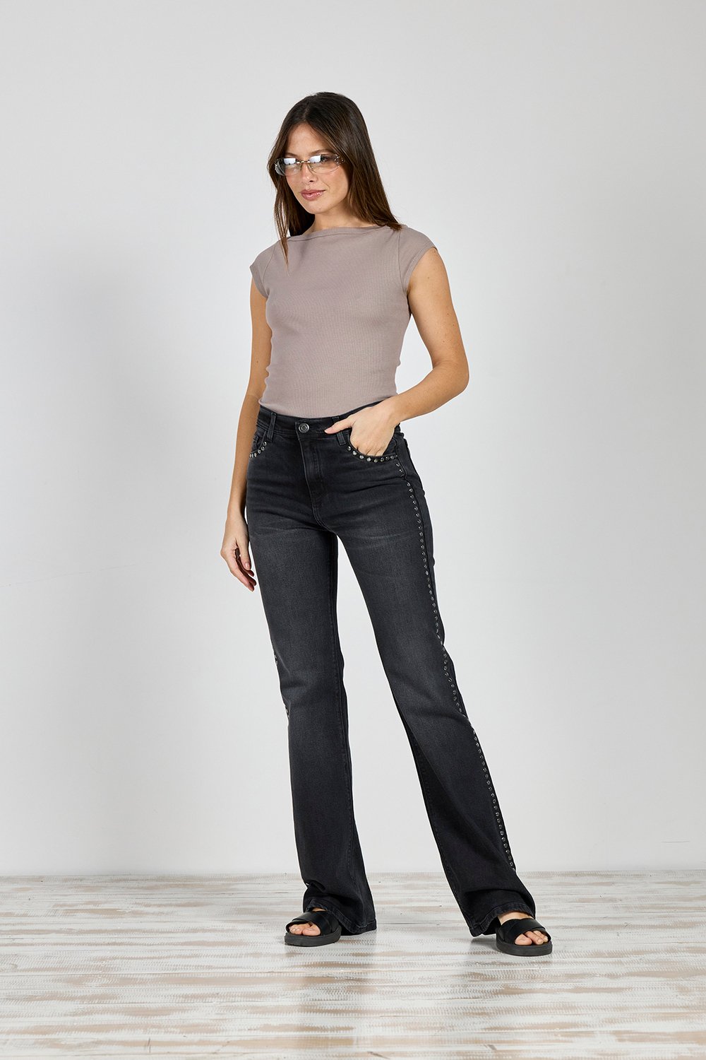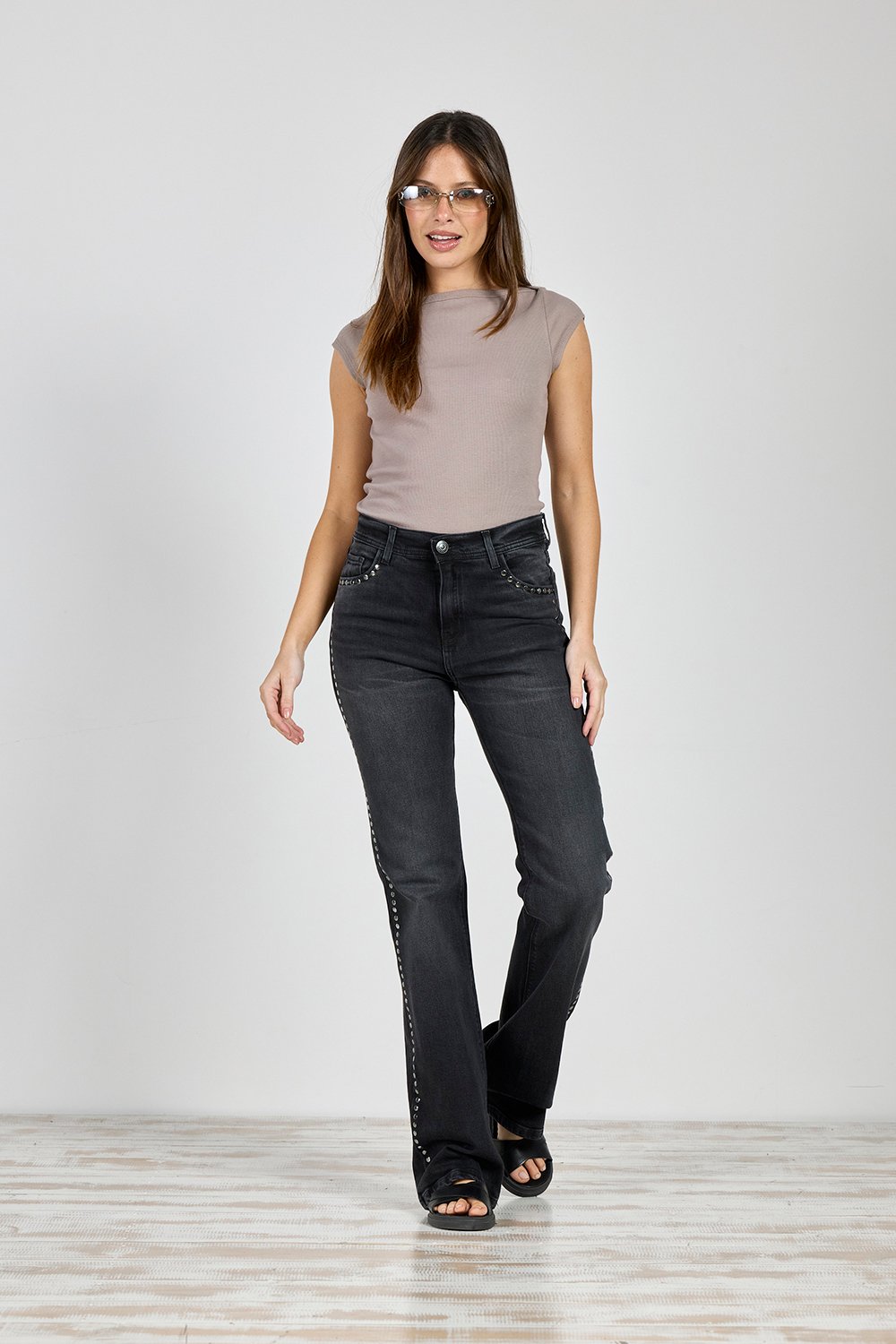 ART. 413 | SEMI OXFORD NEGRO HUMO TACHA LATERAL ELASTIZADO