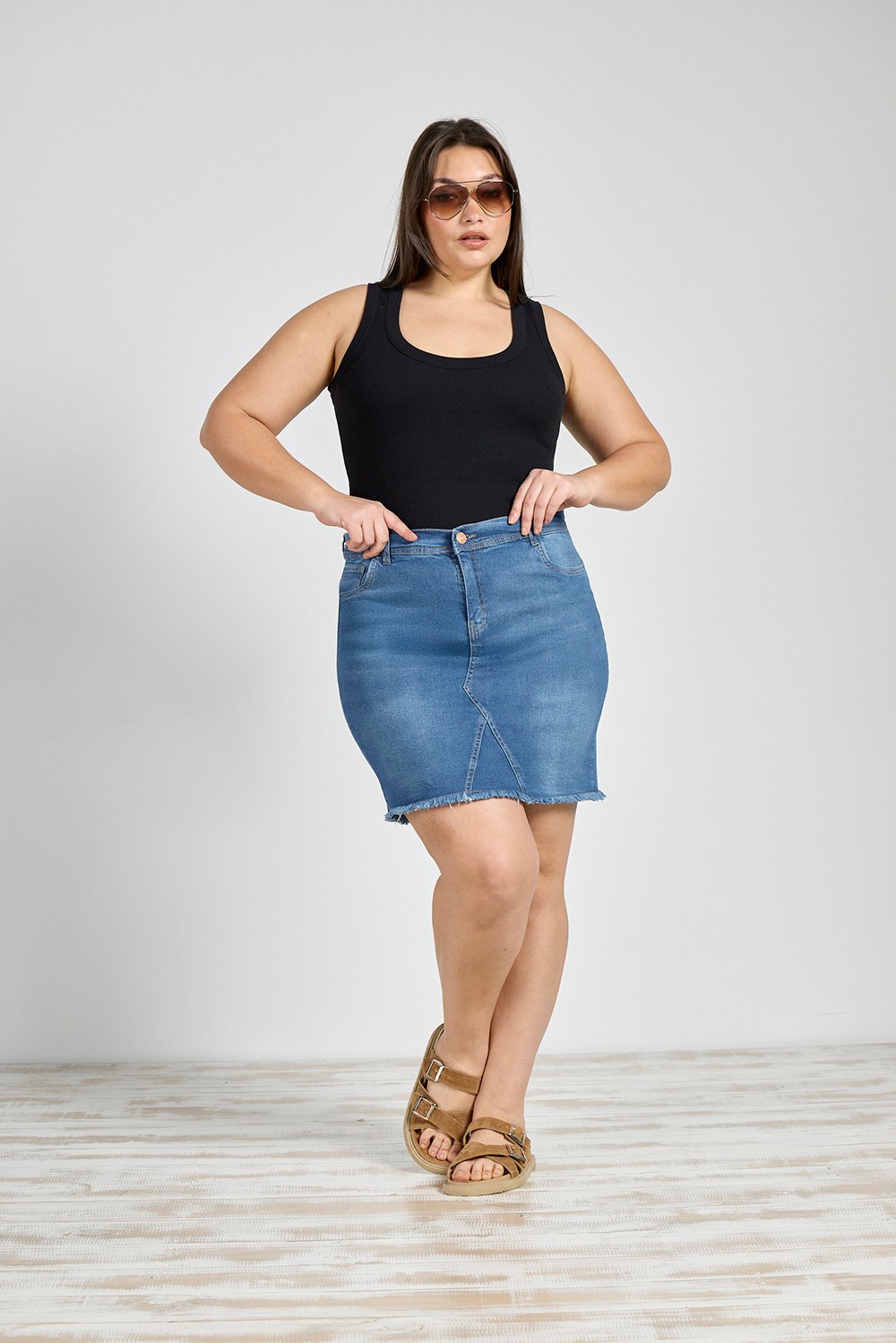 ART. M-539 | POLLERA AZUL DEFLECADO ELASTIZADO
